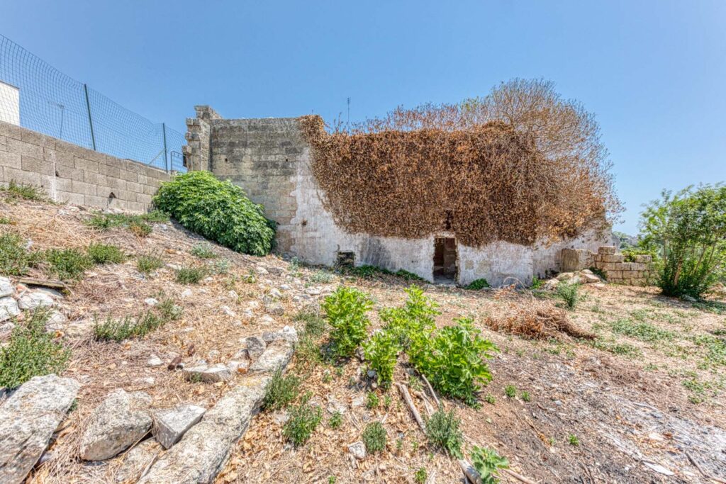 Dalla stanza che fungeva da cucina, si ha l’uscita su un giardino di 200 metri quadrati, mentre sul retro è presente un altro giardino di circa 500 metri quadri dove – attraverso un piccolo portale in carparo – si accede al frantoio ipogeo.