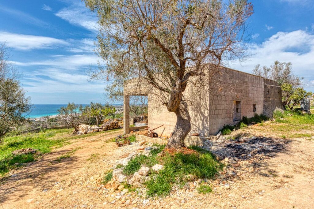 In posizione panoramica, a soli 900 metri dal lungomare, Salento Agency propone in vendita una villetta allo stato rustico a annesso terreno agricolo di proprietà esclusiva.